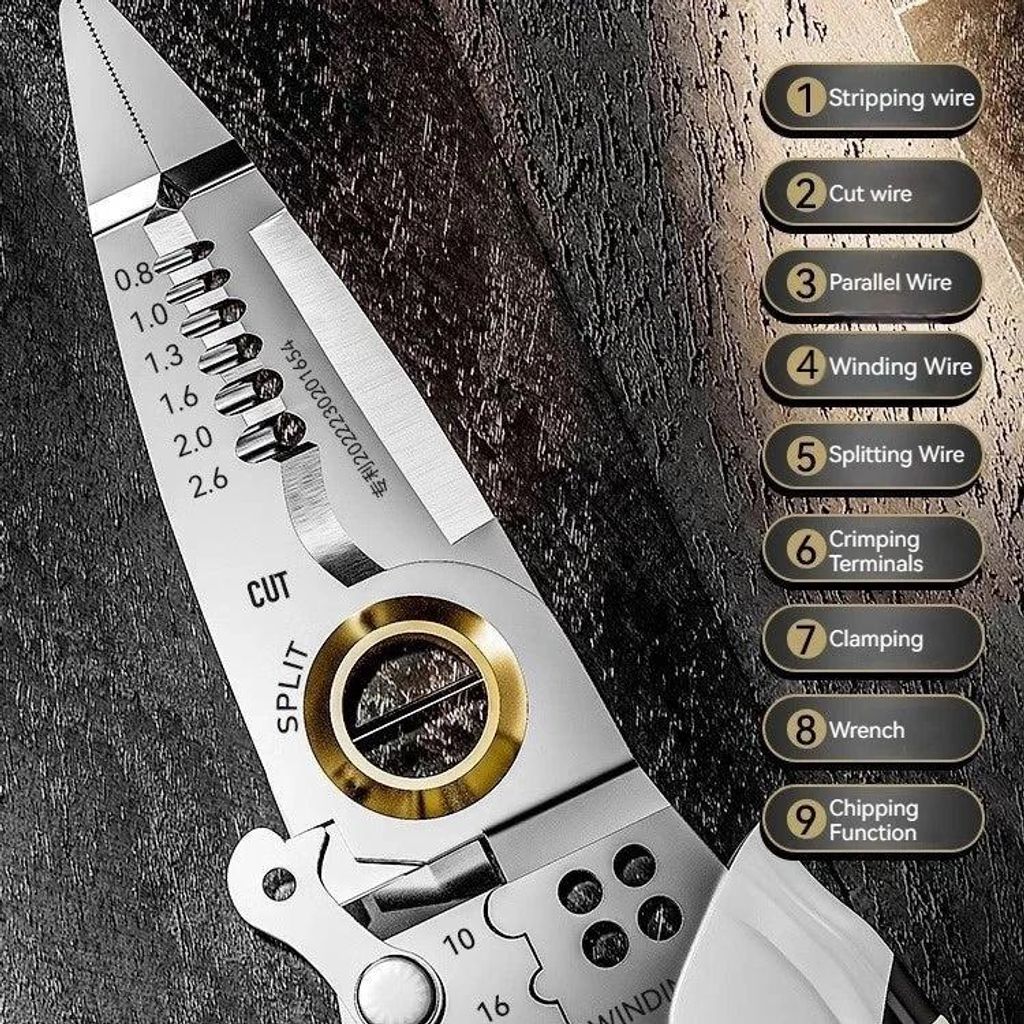 Alicate Multifuncional 9 em 1 - Ferramenta manual com descascador de fios