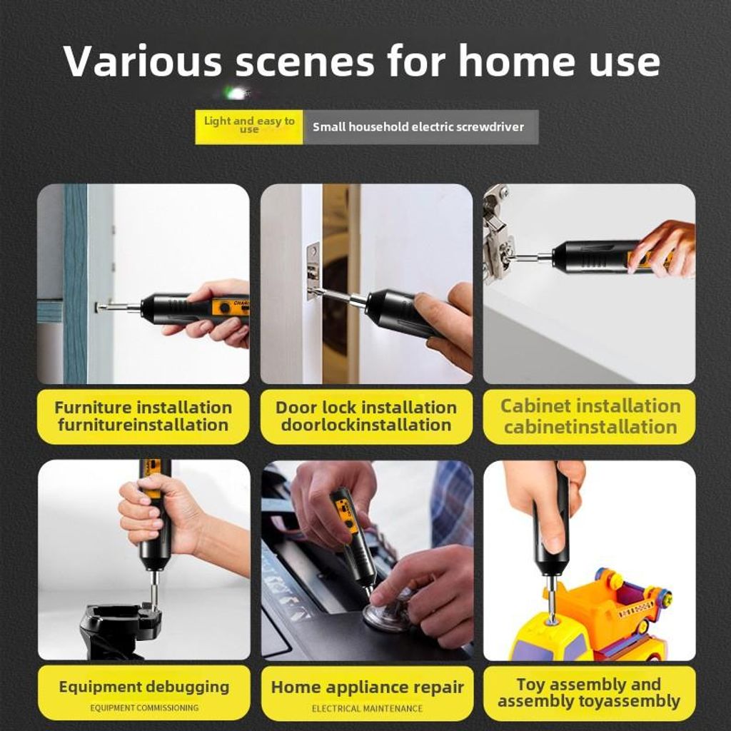 Chave de Fenda Elétrica Sem Escova, Mini Furadeira de Parafusadora Recarregável para Uso Doméstico, Conjunto Completo de Parafusadeira Automática Multifuncional em Venda Direta de Fábrica.