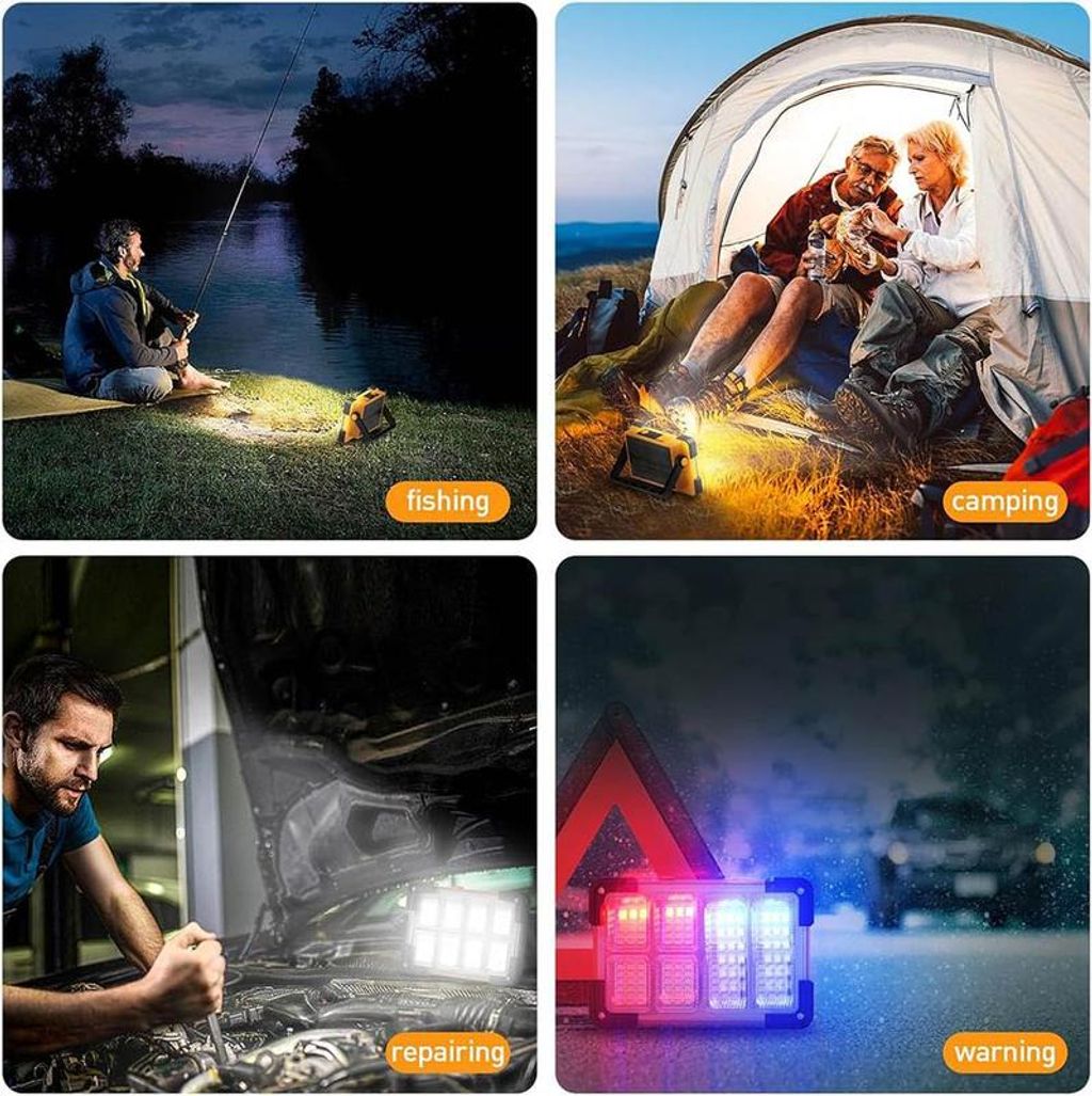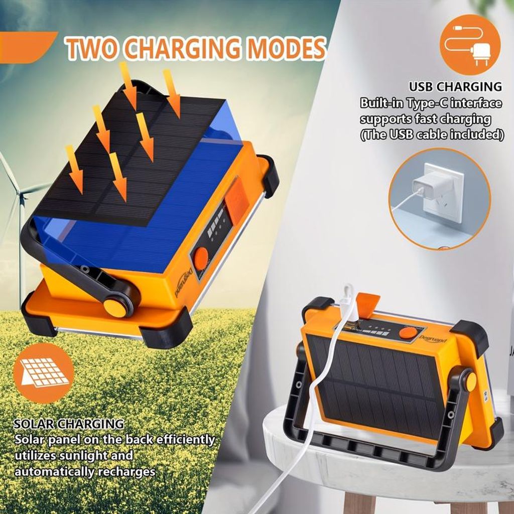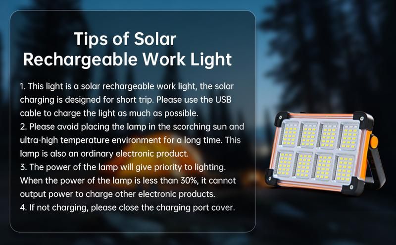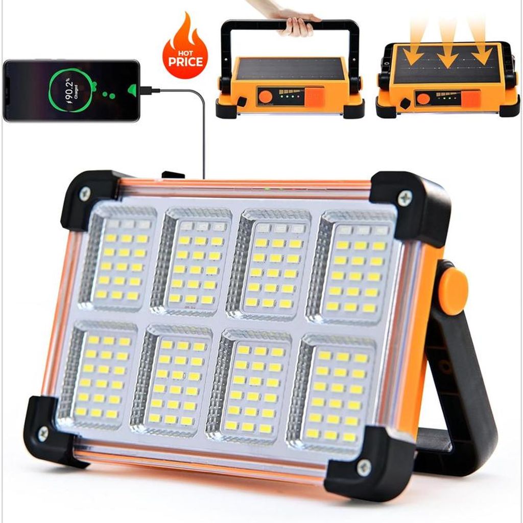 Lanterna de Busca Multifuncional Recarregável a Solar, Holofote LED Portátil para Exterior com Sucção Magnética, Luz de Emergência Portátil para Camping, Feiras Noturnas e Turismo