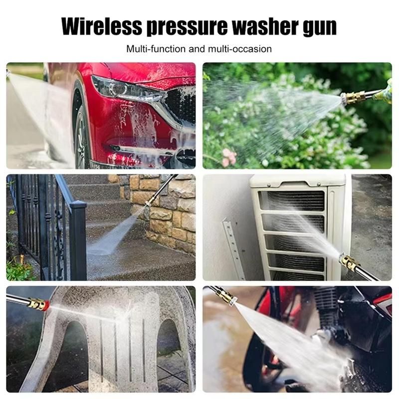 Black style Specification: Type: Cordless Car Washing MachineColour: BlackMaterial: ABSBattery: 48VF lithium batteryBattery capacity: 5.0AhType: 2 batteriesCharger voltage: AC 100-220V 50/60HzPower: 800WPressure: 30 BarFlow load: 4 L/Min~8 L/minWater pipe length: 5m/16.5ftSpeed: 18000 rpmPlug Type: USFeatures:Powerful Lithium Electric High Pressure Washer: The cordless power cleaner offers a powerful 800W motor capable of jetting up to 480L/H. It's a true portable electric washing machine that lets you clean all your ouoor spaces and equipment quickly and easily.Get Water From Anywhere: This high pressure cordless washer weighs approximately 2.5 lbs. The 16.5ft hose with filter basket can effectively filter out impurities, particles, waste leaves or sludge to better protect our presses. Compared to others, our battery powered is less stressful and more portable.MORE POWER TO MAKE MORE: The battery-operated portable pressure cleaner offers a 5.0Ah battery to ensure long battery life; it can be used for at least 30 minutes after a full charge;2 different nozzles at your disposal: Effective cleaning. Our battery operated cordless pressure washers are equipped with 0°, 40°. The 40° spray nozzle sprays water mist, which is suitable for garden watering and plant irrigation, while the 0° spray nozzle provides a direct and powerful water column to remove stubborn stains.Wide application: In addition to car washing, it is also suitable for cleaning yards, pets, bicycles and roofs, and watering flowers.What should I do if the machine does not start after pressing the trigger?1. Check whether the lithium battery is dead, if not, charge it with a charger.2. Observe whether the water inlet pipe is bent or blocked.3. Press and hold the trigger for more than 10 seconds to let the water be sucked into the body.Package Contents:2* batteries1 * tool box1 * Host1 * 5M water pipe1 * foam spray can1 * Charger1 * extension rod1 * User Manual2 * rotating nozzle1 * water pipe connector1 * water filter
